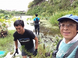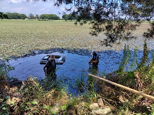 淡水生態研究所の淀城濠での自主事業(アカミミガメの防除と水辺の整備)に参加。