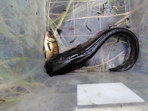 寺田池以外にも西牧・成井の日光浴罠を見回り、周辺の水路などでカメ以外の生き物も観察して東播磨の水辺を楽しんだ。
