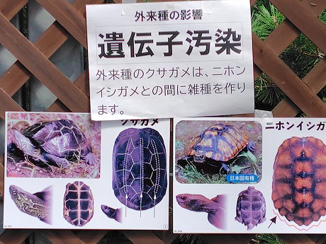 イシガメとクサガメ+多数のウシガエルのオタマジャクシというため池も、クサガメがいる限り雑種化は免れないだろう。
