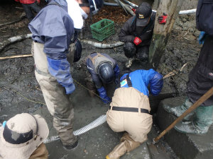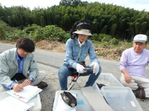君津で調査をしました。哺乳類の足跡がないか、被害にあった個体がいないかなどもチェックしました。