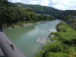 五條市では吉野川とその支流の、宇智川も見た。本流は、今回見た範囲では幅が広すぎて調査には不向き、宇智川も数箇所見たが、浅すぎてやはりかご罠調査は難しそう。