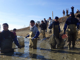 犬立池で行われたレンコン堀に参加した後、高砂の皿池のレンコン堀にも参加しました。 犬立池では人よりも前にイノシシが掘っていて毎年私たちが掘る浅場は荒らされていました。 午後からは皿池でアカミミガメの捕獲をする予定でしたが、思っていたより泥が深く結局アカミミガメは諦めてレンコン堀をしました。 今回は原池と皿池の二箇所でコウノトリを見ることができました。 12月12日