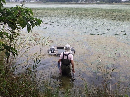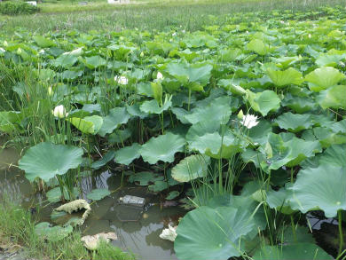 西牧の罠をチェックした後、地元の人たちの頑張りによりハスが復活した高砂のため池を観察しました。 6月20日