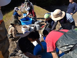 この日のために地元の水利組合や自治会のメンバーが事前に水位の調整や草刈りを行い、当日も行政関係者とともに子供たちが池に入って最後に泥を落とすまで、あれこれお世話をしておられた。