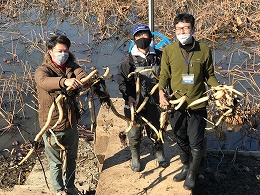その後、犬立池へ。年末までは自由に掘らせていただけるので、地域の方にお知らせした上で、再度レンコンを掘らせていただいた。
