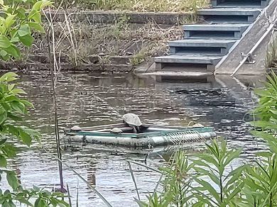 GWに西牧アカミミガメバスターズのオッチャンズが修理して下さった日光浴罠のチェック。