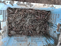 今回は残念なことにアメリカザリガニとブルーギルが以前より増えていた。とはいえ、コンスタントに池干しが行われているので、極端に増えて在来種を駆逐することはない。今回の池干しによってブルーギルはかなり数を減らすだろうし、アメリカザリガニは泥に潜って駆除を逃れた個体は多いだろうが、それでも皆でたくさん捕りまくった。