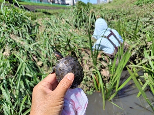 寺田池以外にも西牧・成井の日光浴罠を見回り、周辺の水路などでカメ以外の生き物も観察して東播磨の水辺を楽しんだ。