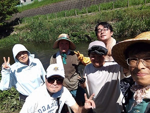 大正川で活動。この日は12日に淀城濠の活動に来てくれた中学生たちも参加。