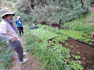 川いい会のメンバーは月末の観察会のため、川に下りる場所の草刈りと整備。